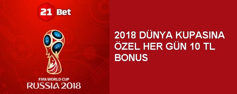 21Bet ile 2018 Dünya Kupasına Özel Her Gün 10 TL Hesabında