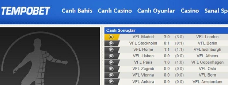 Tempobet canlı bahis platformunda popüler spor dalları mevcuttur. Web ya da mobil site üzerinden mevcut hesabınıza ulaştıktan sonra sitenin en üst kısmında yer alan menü çubuğunda canlı bahis sekmesini tıklayabilirsiniz. Bu alanda devam eden tüm canlı maçlar spor kategorisine göre sıralanmaktadır. Başta futbol olmak üzere basketbol, tenis, masa tenisi gibi sporlar sırasıyla listelenmiştir. Canlı skor, istatistikler ve diğer tüm beklentileriniz sitede karşılanmaktadır. Canlı bahis platformunda yer alan bazı sporlar aşağıdaki gibidir.