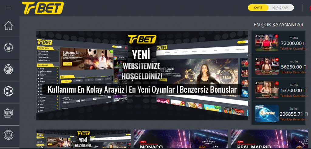 Trbet kaçak bahis sitesi, bahis oyunlarındaki kaliteyi her açıdan en üst seviyeye taşıma amacı gütmektedir. Bu nedenle site tasarımına da gereken özeni verdiğini kanıtlayan Trbet kaçak bahis siteleri, sayfanın önceden üst kısmında yer alan logoları sol kenarda alt alta gelecek şekilde yeniden tasarlamıştır. Sayfadaki göz yoran fazlalıkları azaltmayı amaçlayan Trbet, böylelikle hem sayfa düzeni açısından daha temiz ve düzenli bir görünüş kazanmış hem de yeni görsel tasarımlarla göze daha çok hitap etmeyi başarmıştır.